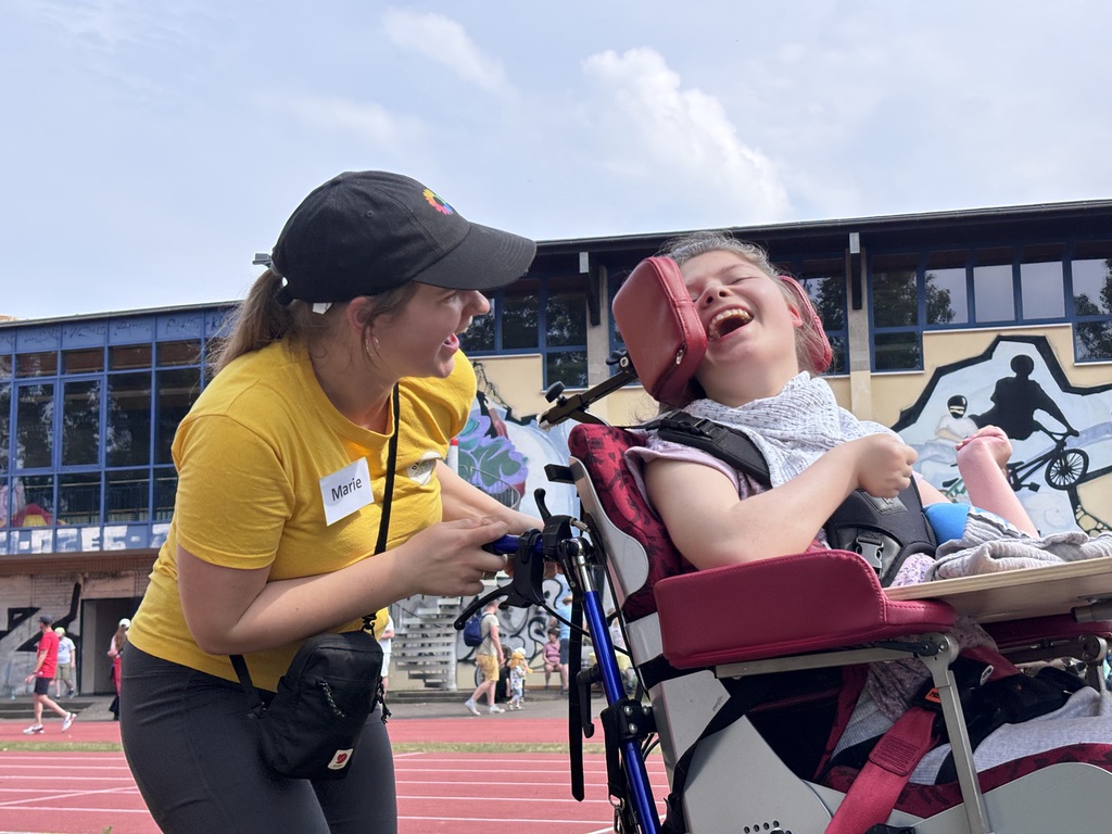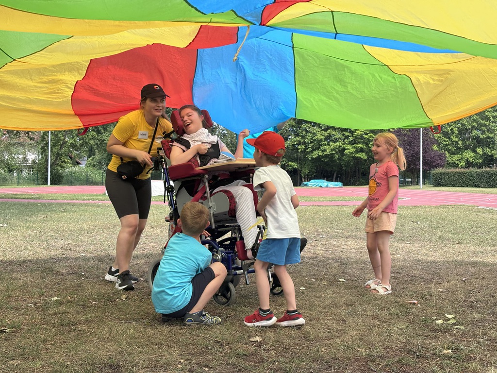 Schon zum 13. Mal fand am 16. Juni 2024 unser alljährliches inklusives Sportfest statt! Rund 150 Kinder, Jugendliche und Erwachsene mit und ohne Behinderung kamen am Sonntag zusammen, um sich gemeinsam zu bewegen. Auf einer Hüpfburg, beim 100-Meter-Sprint sowie beim Boccia konnten sich die Kids austoben und anschließend am Buffet erfrischen. Beim Boccia haben zahlreiche Kids ihr Geschick mit den Kugeln bewiesen. Und wer sich an dem Tag nach einem Tiger oder Schmetterling gefühlt hat, konnte diese Träume beim Kinderschminken wahr werden lassen.